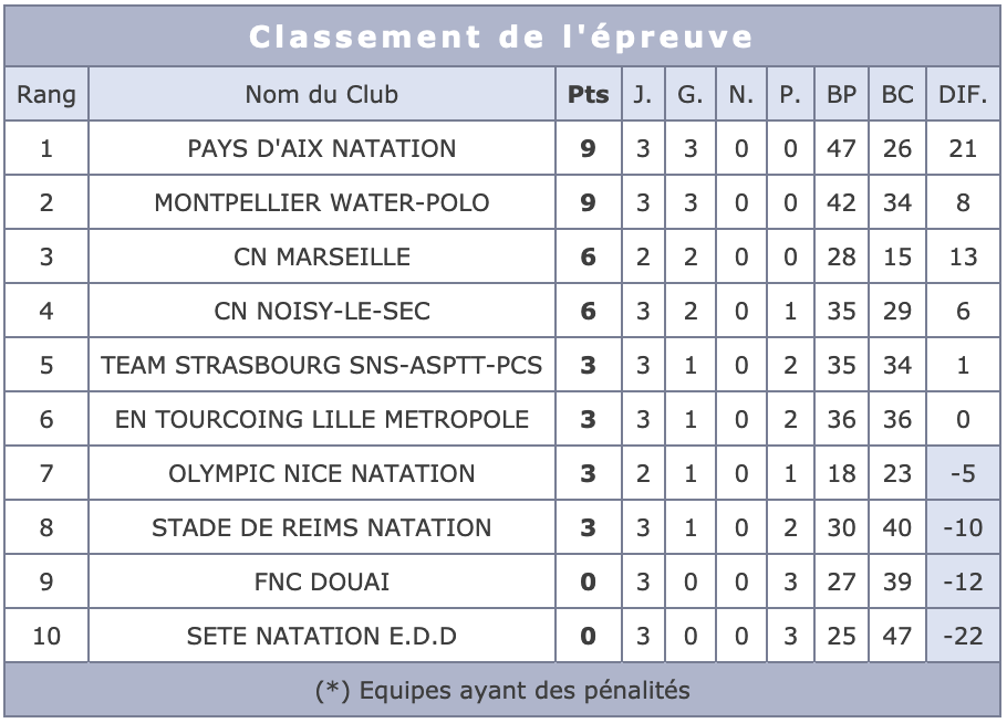- Team Strasbourg - Pays d’Aix Natation : 13-15 (Voir les buts du match)