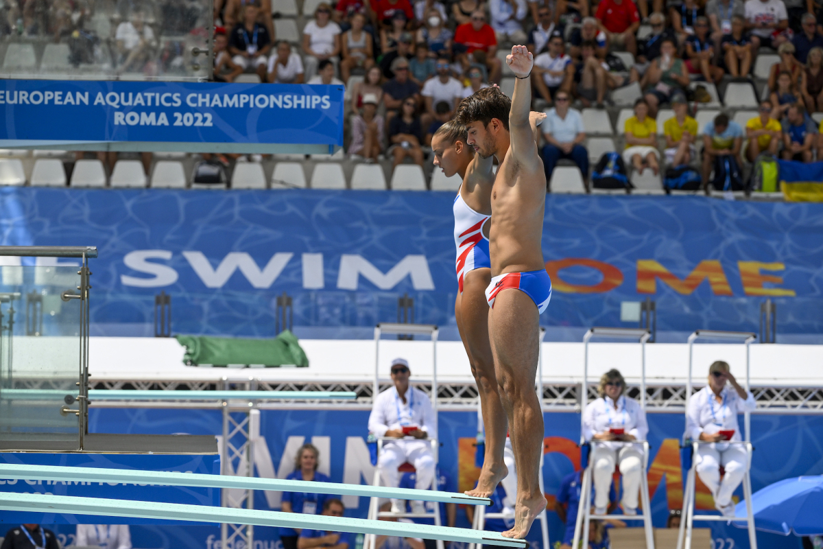 « J'ai toujours un peu le trac, surtout tout seul là-haut. Je n'ai plus l'habitude du 10 m. Mais il m'a suffi d'un plongeon et du soutien de l'équipe pour prendre plaisir. » La légendaire modestie de Gary Hunt n'a pas pris une ride. L'ancien champion britannique de cliff diving, qui plonge désormais pour la France, ne boude pas son plaisir de participer, avec Jules Bouyer et les sœurs Naïs et Jade Gillet, à ces championnats d'Europe de Rome. L'épreuve du team event, qui a ouvert les festivités du plongeon, a ravi les quatre Français engagés ensemble. « Pour moi, c'était d'abord un plaisir », insiste Gary Hunt du haut de ses 38 ans et de son immense expérience internationale. « Nous sommes une jeune équipe, entre guillemets (il rit). Nous présentons des plongeons un peu moins difficiles que les autres mais il y a eu de bonnes choses. »