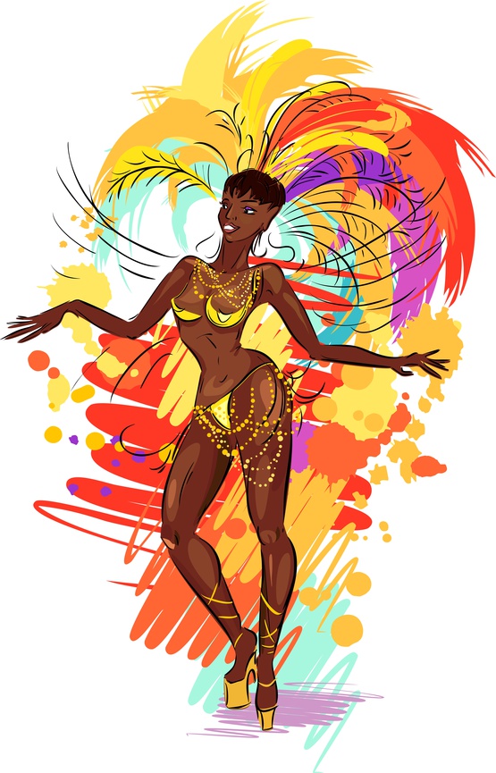 C'est un mot masculin au Brésil , qui a plusieurs origines africaines signifiant "danser en se frottant nombril contre nombril"ou "danser avec gaieté", origines liées aux danses sacrées frénétiques et au culte des ORIXAS ( divinités africaines). C'est la danse du Carnaval , ce moment de liesse populaire , de défoulement pour oublier momentanément la misère le temps du Carnaval. La chanson d'Orfeu Negro dit: " la tristesse n'a pas de fin, le bonheur si... Le bonheur du pauvre, c'est l'illusion du carnaval . On travaille toute l'année pour un moment de rêve, dans un costume de roi, de pirate ou de jardinière, et tout se termine le mercredi ". Samber , c'est bouger très rapidement les pieds suivant la cadence et faire rouler le "bum-bum". Les écoles de samba , structures mêlant social et culturel , rivalisent d'audace et d'imagination au niveau de la performance , des costumes et des chars . Le défilé final a lieu sur le Sambodrome ( où se tiendront le Tir à l'arc et l'arrivée du Marathon) , une avenue de 800 mètres à ciel ouvert entourée de gradins vertigineux, conçue en 1984 par l'architecte Oscar Niemeyer. Si vous vous promenez cet été dans le parc de la Villette à Paris, vous pourrez admirer les totems de la Rambla brésilienne représentant les thèmes et mythes de l'histoire des Cariocas: 12 statues gigantesques, douze comme le nombre des écoles de samba de Rio qui ont défilé sur le sambodrome sur ces chars crées par Fabio RicardoV .