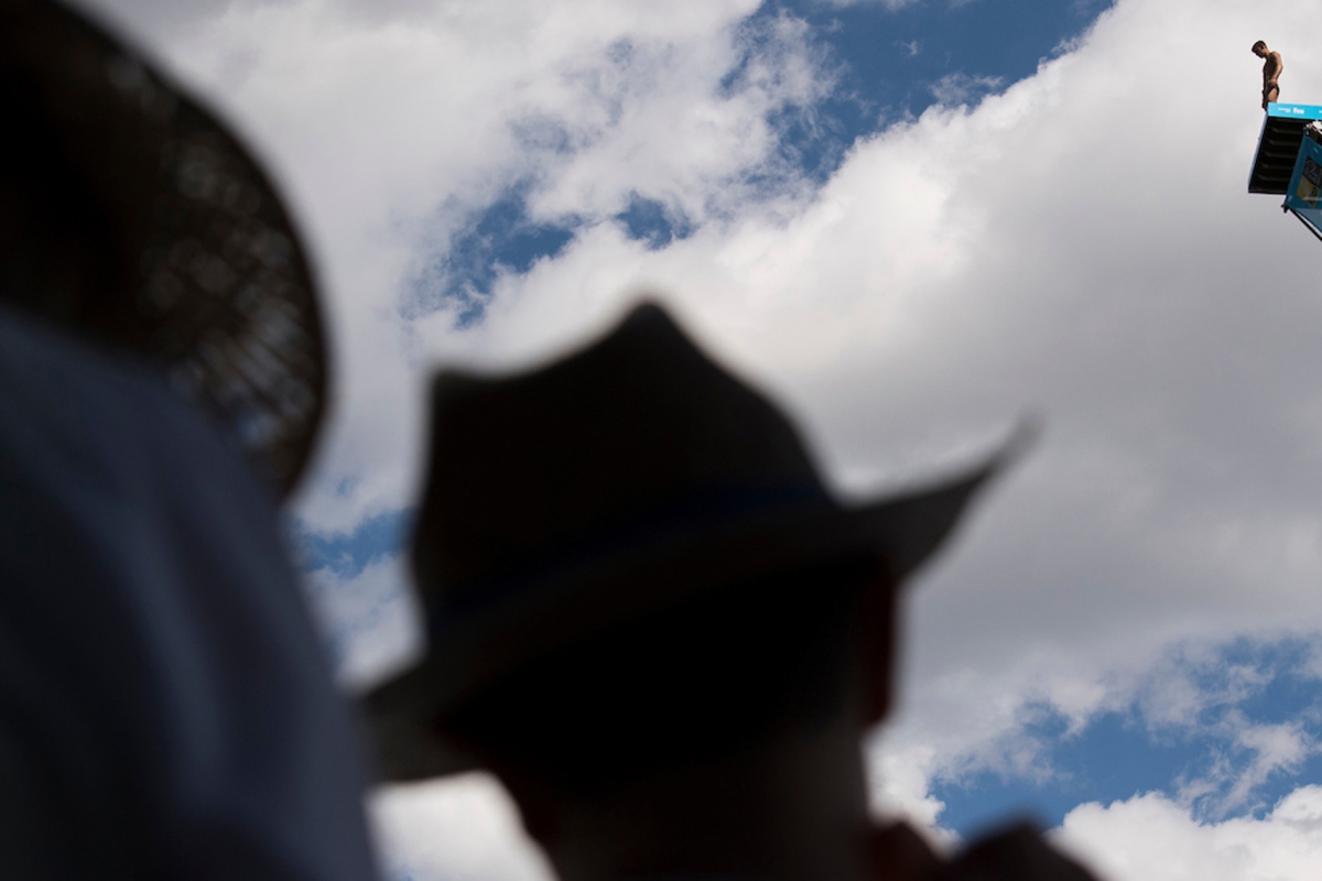 Il y a quatre ans, quand le High Diving signé son entrée au programme des championnats du monde de natation à Barcelone (2013), nous n’avions pas manqué d’aller les regarder plonger dans la rade catalane. Déjà, nous avions été soufflés, bluffés par leur maestria, par la beauté de ces anges tombés du ciel et l’enchaînement de leurs figures. Reste que cette année, à Budapest, le spectacle a encore franchi un palier. Après deux jours de grisailles, c’est sous un ciel dégagé et avec une légère brise que les « plongeurs de l’impossible » se sont élancés de 27 mètres dans une fosse de quinze mètres de diamètre bâtie spécialement sur le Danube. L’occasion était trop belle de demander à l’unique tricolore engagé dans cette épreuve, le Strasbourgeois Cyrille Oumedjkane, de nous faire le récit de sa première journée de compétition (il replongera dimanche 30 juillet pour les deux derniers tours, ndlr). Rencontre.