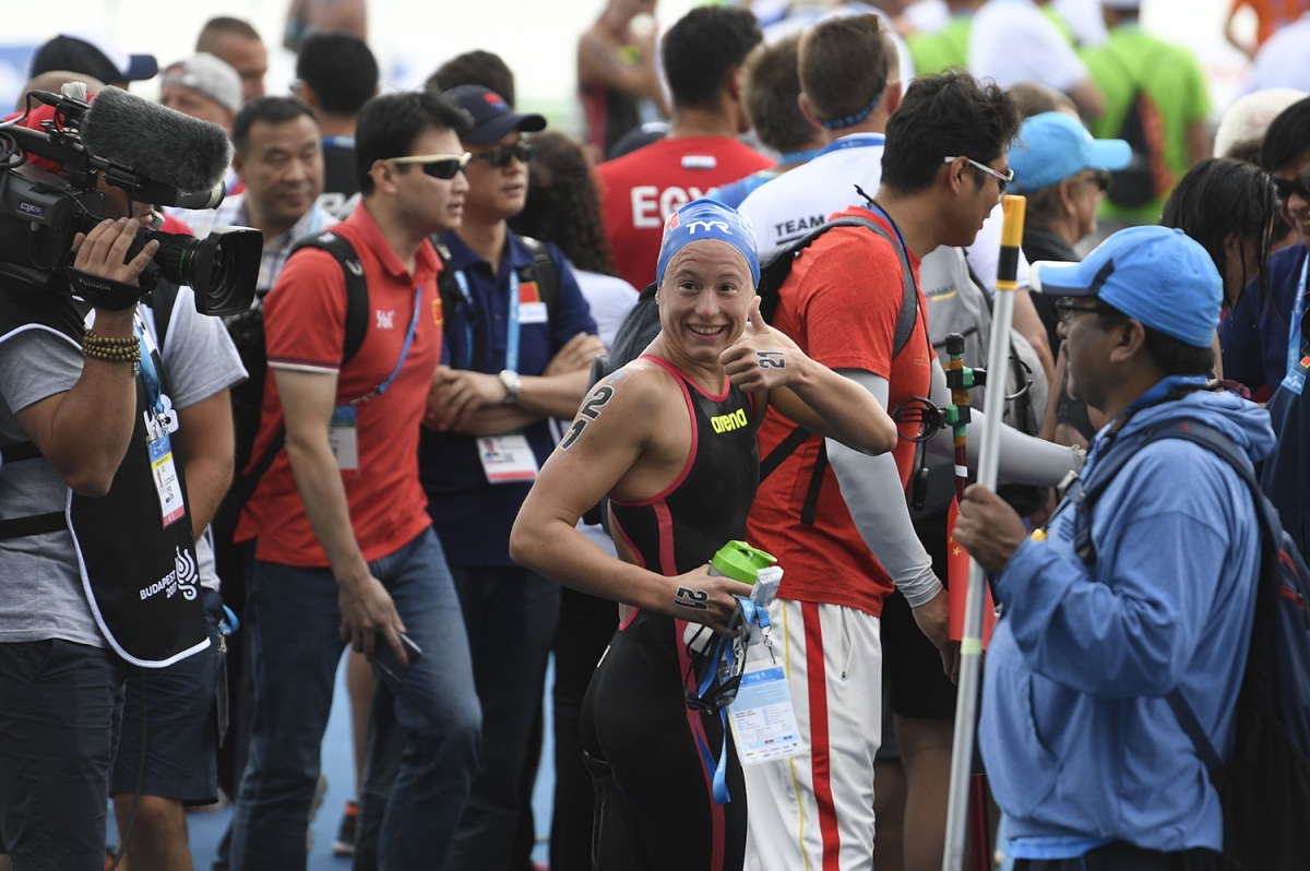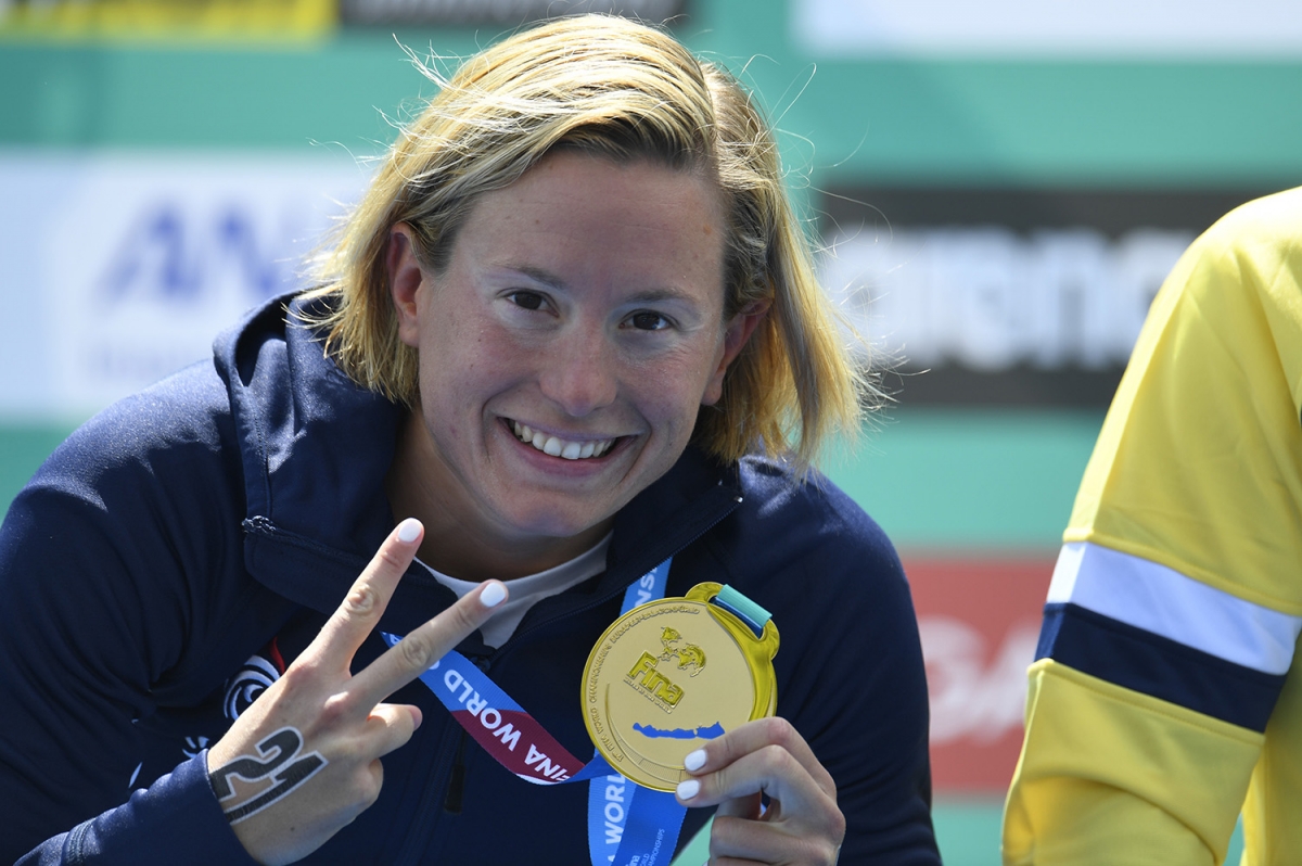 En 2017, à Budapest, Aurélie Muller s'adjuge deux titres mondiaux sur 10 km et avec le relais mixte (KMSP/Stéphane Kempinaire).