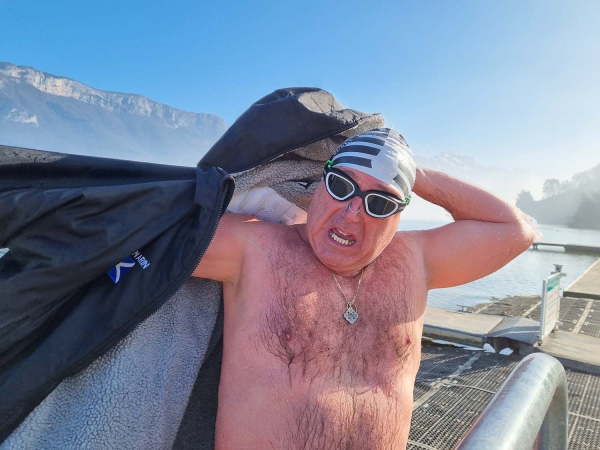 A vélo ou à pied, j’étais toujours dans mes pensées, jamais vraiment libéré. Là, je divague totalement : je pioche moins dans mes pensées et je lâche prise. Pour sûr, je préfère nager dans une eau tempérée autour de huit degrés. Entre dix et douze degrés, je prends encore du plaisir. Mais seize degrés, c’est trop chaud, je n’arrive plus à respirer, à ventiler ! Nager autour de zéro est un autre monde qui fout la trouille. Chaque degré perdu est une marche colossale à franchir pour le corps. Donc entre six degrés à Annecy et zéro en Pologne, ça va être chaud !