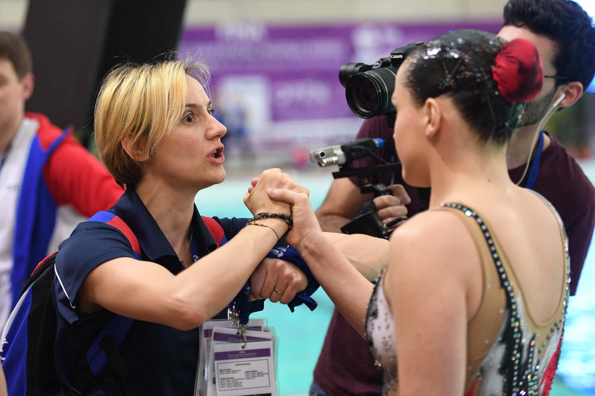 Il n'y a pas longtemps que je m'occupe d'elle en solo, mais je ne me suis jamais dit : « Ouh là là, ça va être dur », ou « aïe, on met une junior dans le monde des seniors ». Au contraire, je me suis dit : « Elle a quelque chose à faire, elle va très bien le faire ». Et c'est ce qui s'est produit. Sans lui mettre la pression : je ne comptais pas sur le fait qu'elle nage bien pour que ça ouvre la porte aux autres, mais il était important qu'elle le fasse pour elle, pour valider son travail au quotidien. Elle a fait face à un sacré défi : elle a changé son solo entre l'étape de World Series de Paris – où elle nage dans la catégorie senior – et ces championnats du monde. Elle a donc énormément évolué dans l'année, et c'est vraiment top. Elle a changé musique et chorégraphie pour coller davantage aux attentes de la catégorie.