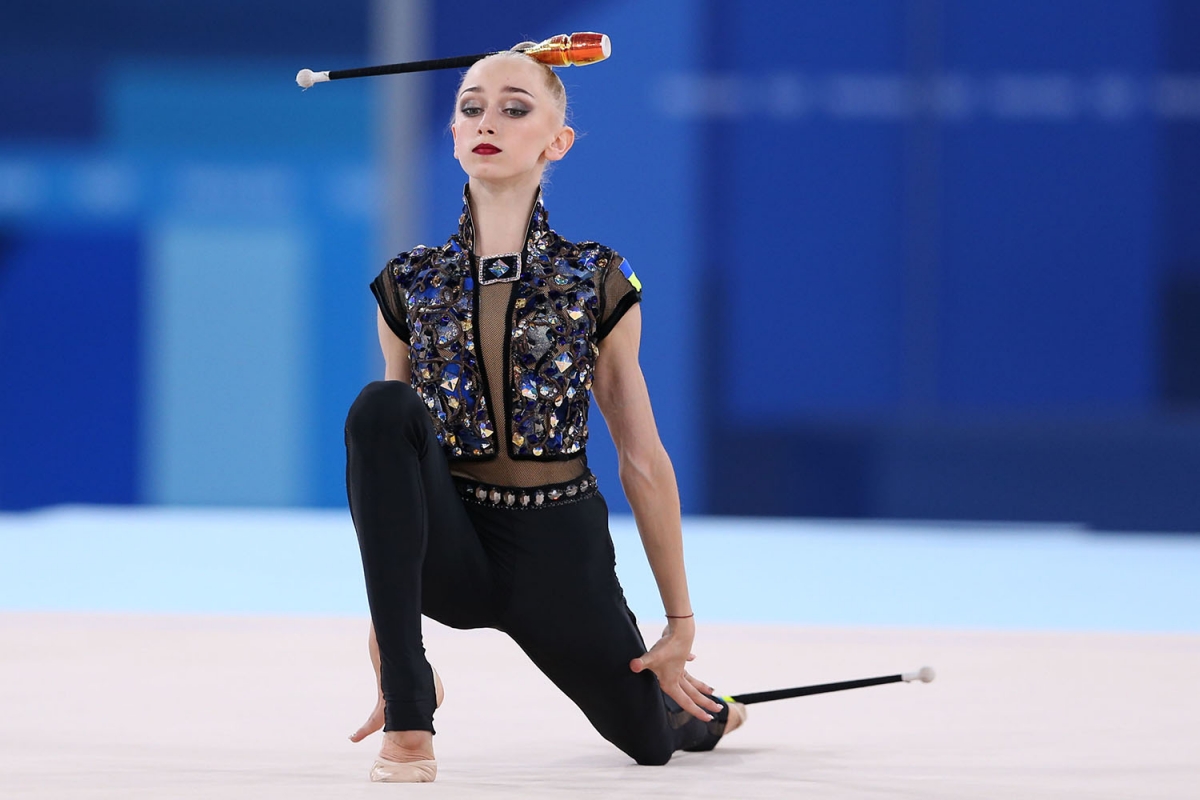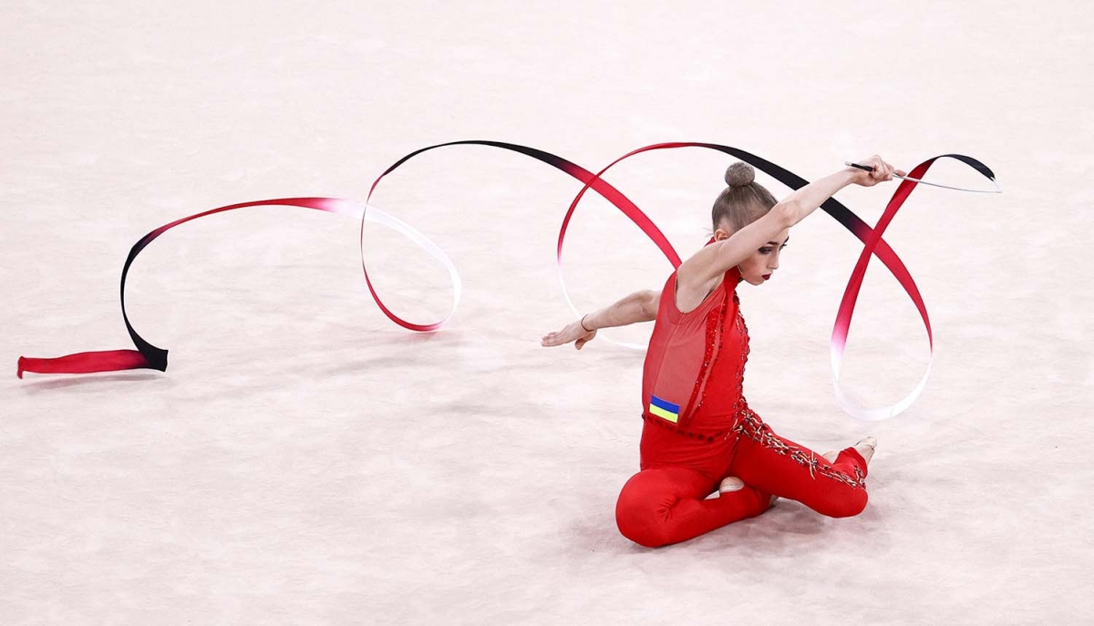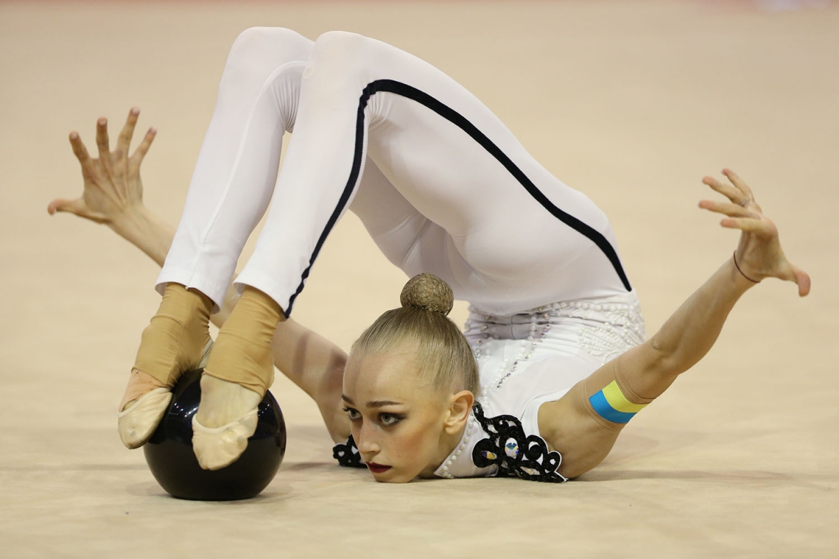 Viktoria Onoprienko éclate de rire. « Si j'ai essayé la natation synchronisée ? Dans l'eau ! Non ! Je ne nage pas bien du tout. Si je parvenais à rester dans une position dans la piscine, ce serait déjà une victoire ! » La gymnaste de Kiev se montre curieuse à notre idée de comparaison entre son sport et la synchro mais reconnaît d'emblée leurs différences. Si l'on imagine bien son manque d'aisance dans l'eau, sa compatriote Olesia Dereviantchenko, membre elle aussi de l'équipe nationale mais en natation artistique cette fois, n'a pas ce problème. Sauf que, quand on demande à la jeune nageuse d'entrer dans le bassin équipée d'un ballon de GR, les choses se corsent. « Dans l'eau, il essayait constamment de me fuir », maudit-elle l'engin de gymnastique une fois notre séance photo terminée. « Sur terre, tout était complètement différent : c'était très facile et confortable pour moi de travailler avec lui », constate-t-elle.