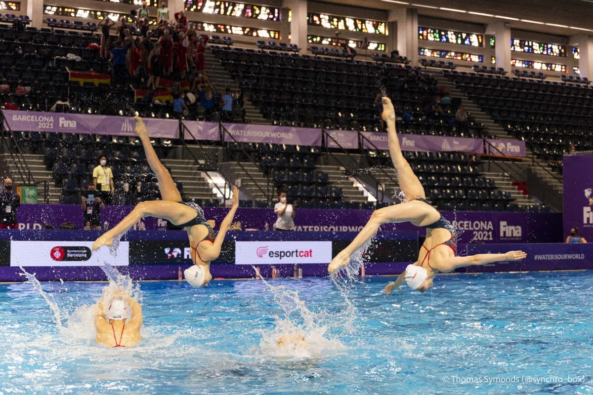 Cette année n’aura épargné personne, chacun ayant dû faire face aux imprévus et s’adapter sans cesse, mais les Françaises ont certainement déjà gagné la première place de l’abnégation et du combat. Il y a quelques semaines, Ève Planeix, la voltigeuse de l’équipe, retombe mal sur un porté. La soliste de l’équipe de France est forfait. Et il y a quelques jours à peine, c’est, cette fois, au tour de la capitaine, Marie Annequin, de se fracturer le pouce sur un porté également. La doyenne du team tricolore ne prendra donc pas part à la compétition barcelonaise. Elle a cependant tenu à faire le voyage, un plâtre bleu bariolé de textes et de cœurs sur sa main droite, et ne perd pas une occasion pour encourager ses coéquipières. « Nous n’avons pas surmonté autant d’épreuves pour qu’il ne se passe pas un truc grandiose ce week-end », livre-t-elle avec optimisme. Demain (vendredi 11 juin), vers 16h25, nous saurons donc si la France, pour la première fois depuis les Jeux olympiques de Sydney en 2000, alignera une équipe de natation artistique à la plus belle compétition du monde.