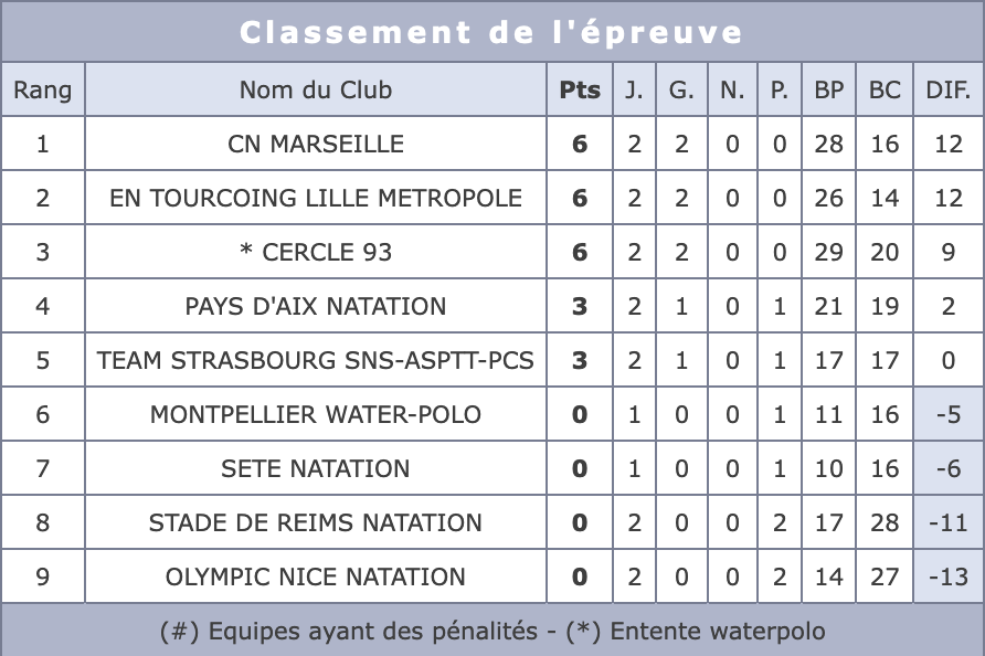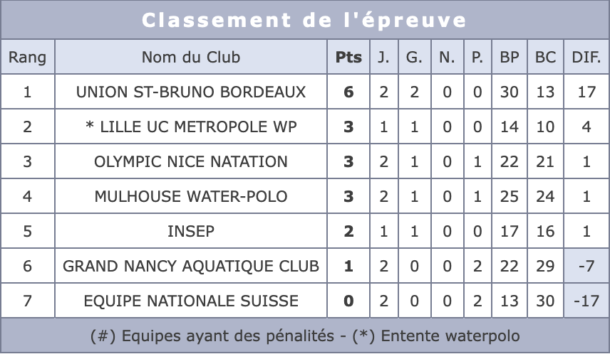 INSEP : Bouloukbachi 1, Di-Fraja 2, Andres 2, Heurtaux 5, Vernoux 5, Raspo 1, Bacle 1.