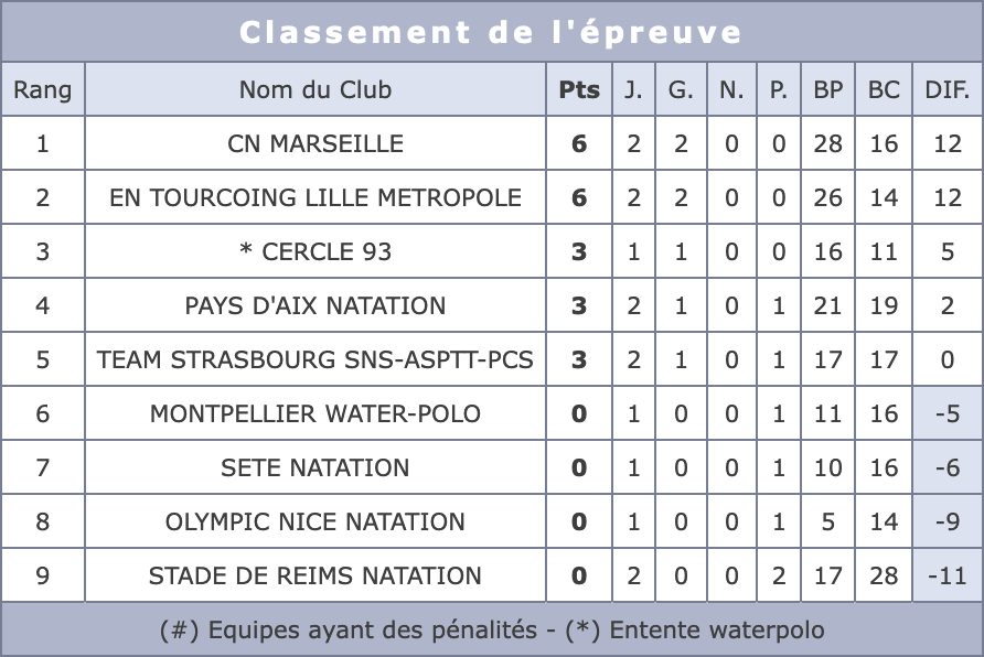 Marseille : Spaic 1, Prlainovic 1, Olivon 1, Izdinsky 1, Bouet 2, Bodegas 2, Vukicevic 2, Vanpeperstraete 2.