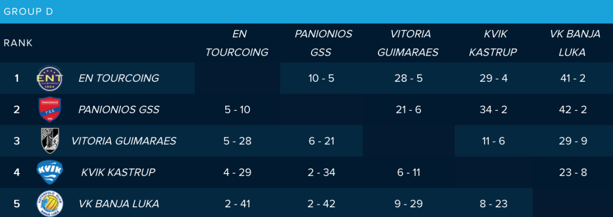 EN Tourcoing – Vitoria Guimaraes : 28-5 (9-1, 8-2, 3-2, 8-0)