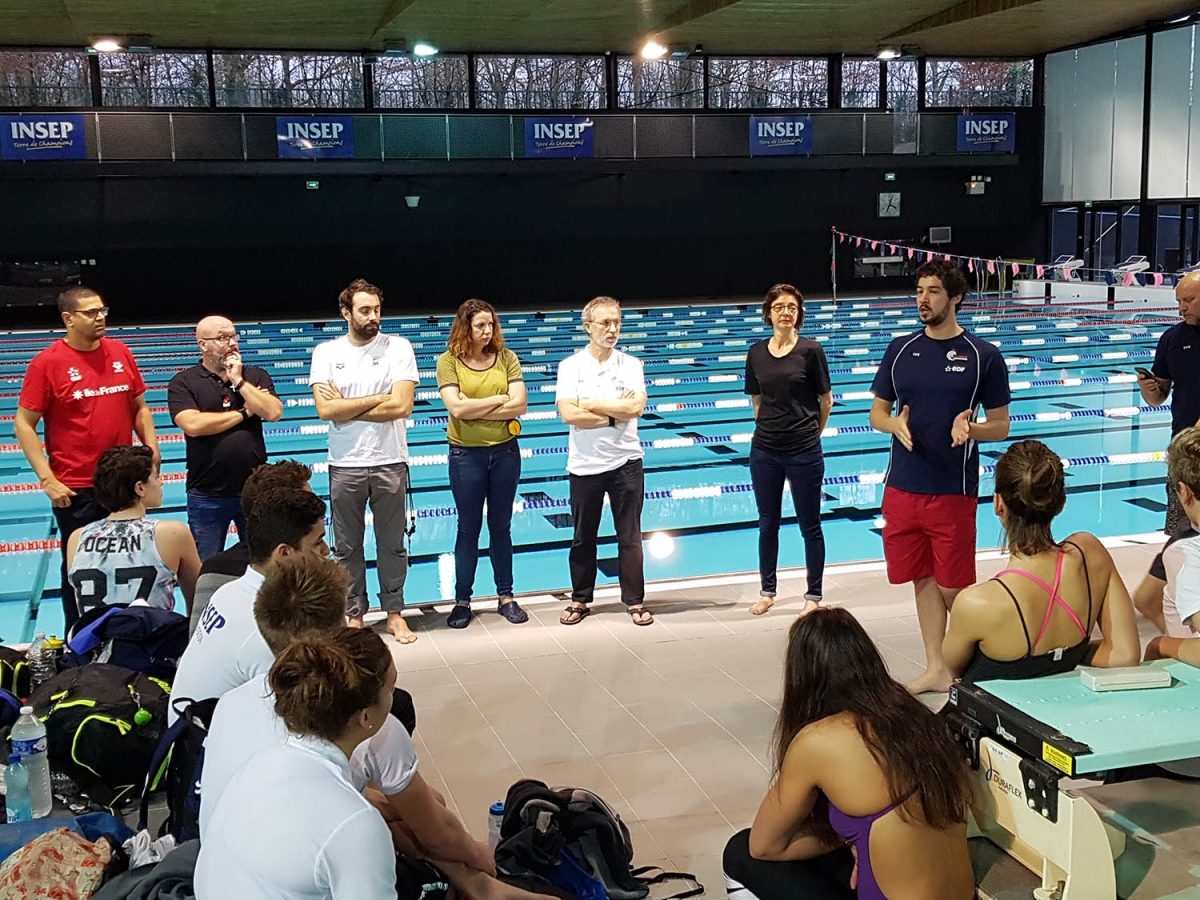 Le lendemain, dimanche 28 janvier, à l’initiative du Directeur de la discipline Stéphane Lecat, un collectif élargi des équipes de France d’eau libre composé des nageurs élites et juniors, ainsi que de leurs coachs en club, s’est donnée rendez-vous à la piscine de l’INSEP (Institut National du Sport, de l’Expertise et de la Performance) pour une matinée de tests scientifiques inédite.