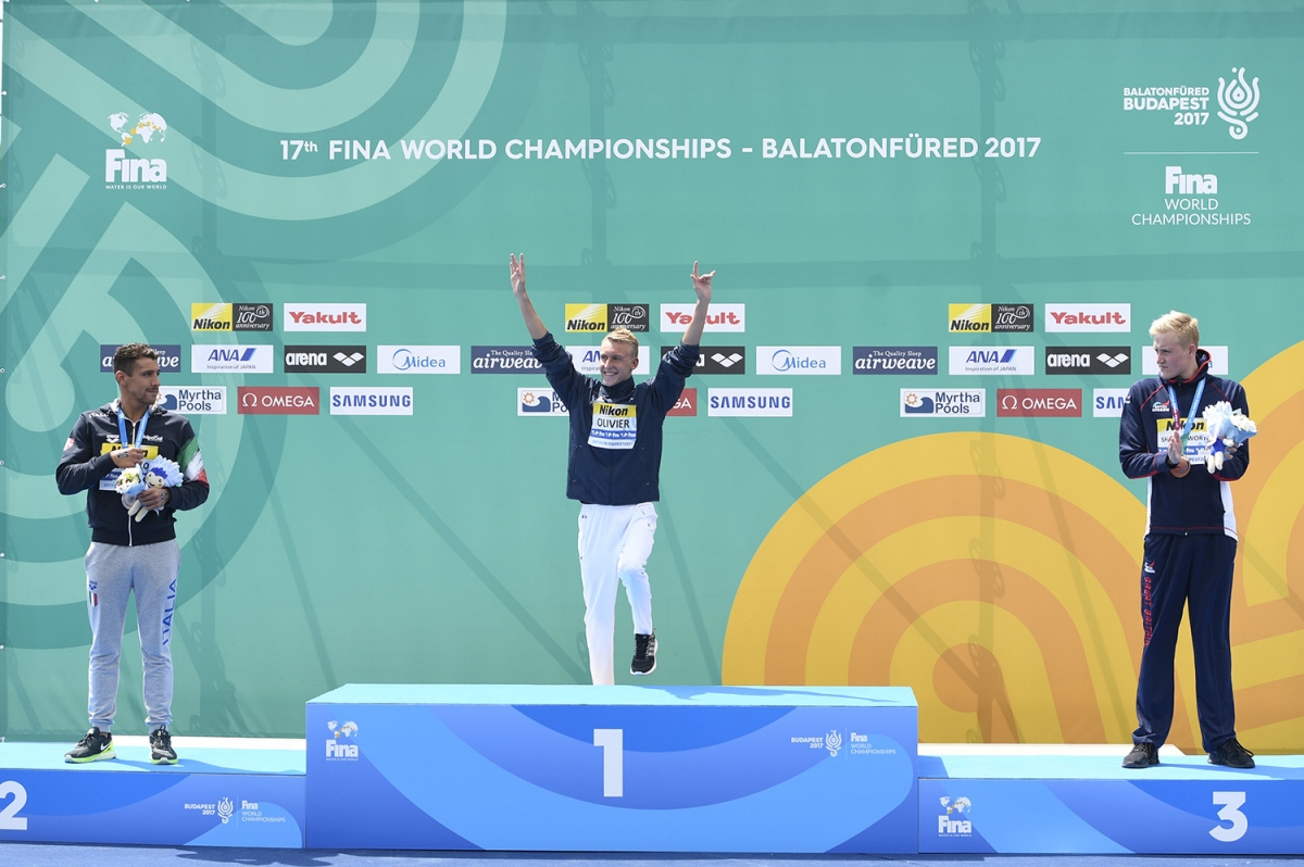 Ça montre à quel point Aurélie est une immense championne. Pourtant, je dois le reconnaître, je n’avais pas suivi l’eau libre à Pékin… Comme quoi, rien ne me prédestinait à m’orienter vers cette discipline. En fait, j’y suis venu un peu par hasard. A ce titre, je trouve que le travail de détection que réalise Stéphane Lecat (directeur de la discipline) auprès des jeunes est formidable. Océane Cassignol et Logan Fontaine n’ont que 17 et 18 ans, mais ils ont déjà été titrés avec le relais mixte cet été à Budapest (en compagnie d’Aurélie Muller et de Marc-Antoine Olivier, ndlr).