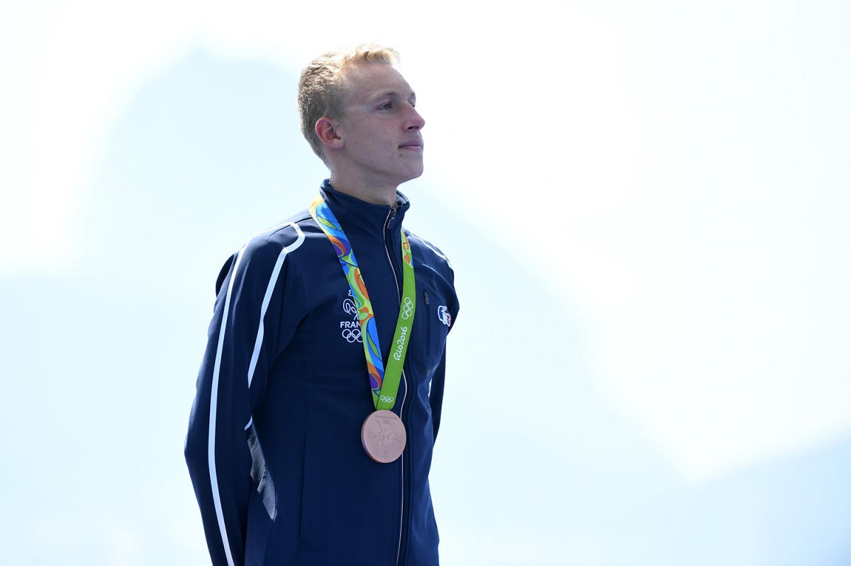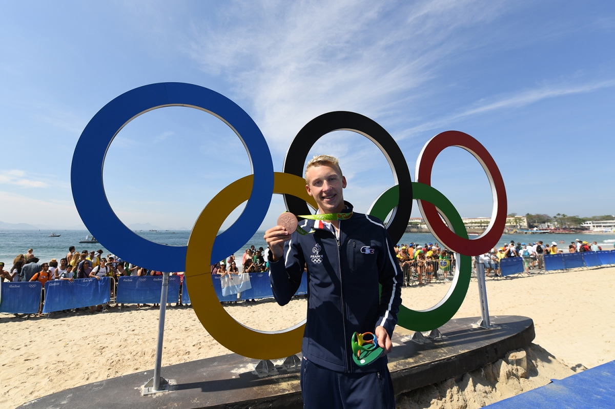 Marc-Antoine avec sa médaille de bronze du 10 km autour du cou lors des Jeux de Rio (KMSP/Stéphane Kempinaire).