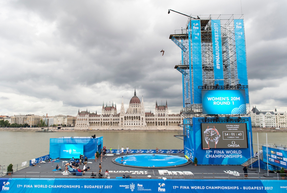 Il y a quatre ans, quand le High Diving signé son entrée au programme des championnats du monde de natation à Barcelone (2013), nous n’avions pas manqué d’aller les regarder plonger dans la rade catalane. Déjà, nous avions été soufflés, bluffés par leur maestria, par la beauté de ces anges tombés du ciel et l’enchaînement de leurs figures. Reste que cette année, à Budapest, le spectacle a encore franchi un palier. Après deux jours de grisailles, c’est sous un ciel dégagé et avec une légère brise que les « plongeurs de l’impossible » se sont élancés de 27 mètres dans une fosse de quinze mètres de diamètre bâtie spécialement sur le Danube. L’occasion était trop belle de demander à l’unique tricolore engagé dans cette épreuve, le Strasbourgeois Cyrille Oumedjkane, de nous faire le récit de sa première journée de compétition (il replongera dimanche 30 juillet pour les deux derniers tours, ndlr). Rencontre.