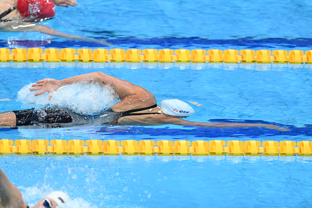 "Dans le prolongement du départ, au moment où il reprend sa nage, sur la première coulée, le nageur doit avoir une vitesse supérieure à sa vitesse de nage. Comme c’est compliqué de créer de la vitesse, et couteux au niveau énergétique, l’idéal est d’optimiser la vitesse emmagasinée grâce au départ. En petit bassin, les coulées se répètent plus souvent. Si le nageur y est très habile, sur un 100M petit bassin, il pourra passer 60M sous l’eau (30M en grand bassin). Et là, effectivement, la coulée est énorme et devient prépondérante dans le résultat de la course. La gestion du départ, des coulées, cela peut être avantageux pour certains, mais c’est aussi couteux musculairement, et il y a tout un travail essentiellement sur les jambes à faire à l’entraînement."