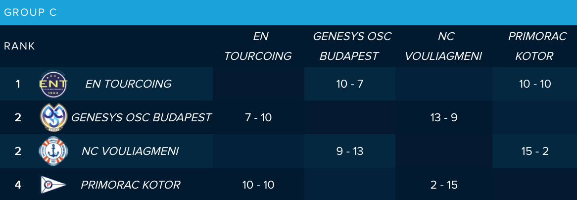 C’est un énorme coup qu’a réalisé Tourcoing face à l’OSC Budapest. Les hommes de Petar Kovacevic ont rendu une copie parfaite pour s’imposer face aux hongrois. Contrairement à la veille, ils sont tout de suite rentrés dans le match et menaient rapidement de deux buts (0-2 puis 1-3 après huit minutes de jeu). Le retour de l’OSC durant le second quart temps (4-4 à trois minutes de la mi-temps puis 5-5 peu de temps après la reprise du troisième quart temps), puis le passage devant au score (7-5 en milieu de période) n’ont pas semé le doute dans la tête des Neptuniens qui reprenaient l’avantage dans les derniers instants du troisième quart temps (7-8). Le dernier quart temps sera également à l’avantage de Mehdi Marzouki (auteur de trois buts) et des siens qui s’imposeront finalement 7 buts à 10. Un succès qui offre la première place du groupe à Tourcoing juste avant le dernier round de dimanche où ils affronteront les grecs de Vouliagmeni.